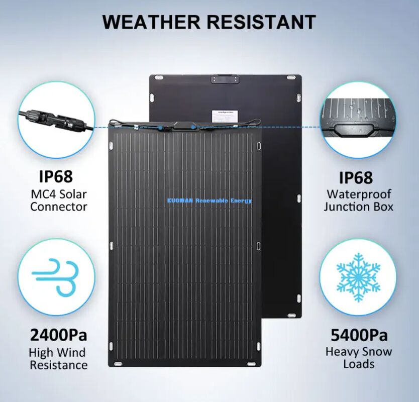 Redefining off-grid mobility, our ETFE Flexible Solar Panel Series delivers high-efficiency power (100W–500W) in an ultra-slim, bendable form factor. Engineered for life on the move, these panels are the preferred energy solution for RV travelers, marine vessels, outdoor gear manufacturers, and furniture-integrated solar applications across the Americas and Africa. With industry-leading 24.2% cell efficiency and a durable 7/9-layer composite construction, they convert sunlight into usable power even in tight spaces and curved surfaces where rigid panels cannot go.